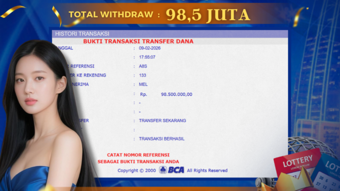 DEWATOGEL mengucapkan selamat kepada user id : MEL*** yang telah berhasil mendapatkan jackpot pada permainan TOGEL DI TOTO MACAU 4D. Kemenangan sebesar Rp 98.500.000,-. telah dibayarkan LUNAS oleh pihak dewatogel kepada pemilik user id setelah yang bersangkutan mengisi formulir withdraw. Proses pencairan dana berlangsung sangat cepat hanya dalam waktu 5-10 menit sudah berada dalam rekening pemilik user id. Bukti transfer yang dapat anda lihat adalah bukti SAH / VALID yang langsung di dapatkan melalui bukti transaksi dari Bank yang digunakan untuk pengiriman dana pada rekening pemilik user id. Terima kasih kami sampaikan kepada para pengguna setia DEWATOGEL yang telah menggunakan situs kami, sebagai Bandar Terpercaya yang pastinya membayar semua kemenangan member hingga lunas. Apakah DEWATOGEL PENIPU ? Reputasi “DEWATOGEL TERPERCAYA” sudah sangat melekat. puluhan hingga ratusan ribu pengguna setia DEWATOGEL tetap menggunakan situs terbesar dan terbaik di Indonesia ini. Hapus rasa was-was dan khawatir anda, kemenangan anda berapapun PASTI dibayarkan hingga lunas.