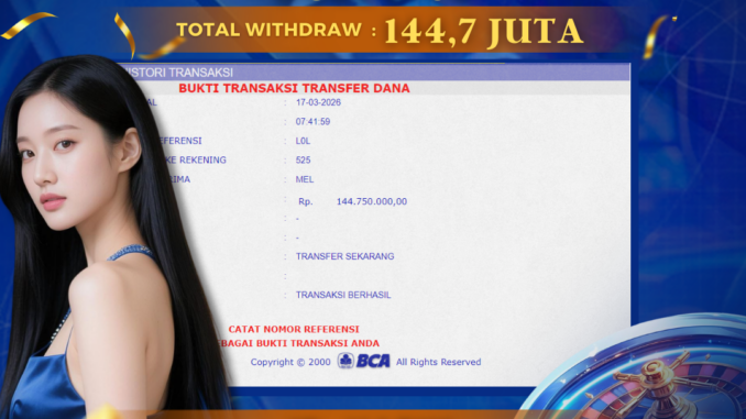 DEWATOGEL mengucapkan selamat kepada user id :KAP*** yang telah berhasil mendapatkan jackpot pada permainanLIVE CASINO di DUEL DICE . Kemenangan sebesar Rp 144.700.000,-. telah dibayarkan LUNAS oleh pihak dewatogel kepada pemilik user id setelah yang bersangkutan mengisi formulir withdraw. Proses pencairan dana berlangsung sangat cepat hanya dalam waktu 5-10 menit sudah berada dalam rekening pemilik user id. Bukti transfer yang dapat anda lihat adalah bukti SAH / VALID yang langsung di dapatkan melalui bukti transaksi dari Bank yang digunakan untuk pengiriman dana pada rekening pemilik user id. Terima kasih kami sampaikan kepada para pengguna setia DEWATOGEL yang telah menggunakan situs kami, sebagai Bandar Terpercaya yang pastinya membayar semua kemenangan member hingga lunas. Apakah DEWATOGEL PENIPU ? Reputasi “DEWATOGEL TERPERCAYA” sudah sangat melekat. puluhan hingga ratusan ribu pengguna setia DEWATOGEL tetap menggunakan situs terbesar dan terbaik di Indonesia ini. Hapus rasa was-was dan khawatir anda, kemenangan anda berapapun PASTI dibayarkan hingga lunas.