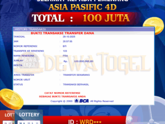 DEWATOGEL JACKPOT TOGEL DI ASIA PACIFIC 4D Rp 100.000.000,- LUNAS MEMBER DEWATOGEL MENERIMA PELUNASAN KEMENANGAN JACKPOT TOGEL DI ASIA PACIFIC 4D Rp 100.000.000,- LUNAS “DEWATOGEL […]
