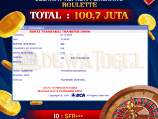 DEWATOGEL JACKPOT LIVE CASINO DI ROULETTE Rp 100.700.000,- LUNAS