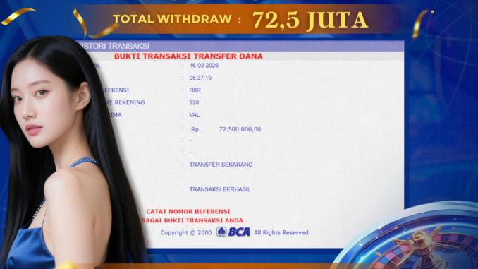 DEWATOGEL mengucapkan selamat kepada user id : VAL*** yang telah berhasil mendapatkan jackpot pada permainanLIVE CASINO DI DRAGON TIGER WILD. Kemenangan sebesar Rp 72.500.000,-. telah dibayarkan LUNAS oleh pihak dewatogel kepada pemilik user id setelah yang bersangkutan mengisi formulir withdraw. Proses pencairan dana berlangsung sangat cepat hanya dalam waktu 5-10 menit sudah berada dalam rekening pemilik user id. Bukti transfer yang dapat anda lihat adalah bukti SAH / VALID yang langsung di dapatkan melalui bukti transaksi dari Bank yang digunakan untuk pengiriman dana pada rekening pemilik user id. Terima kasih kami sampaikan kepada casino fast withdrawal para pengguna setia DEWATOGEL yang telah menggunakan situs kami, sebagai Bandar Terpercaya yang pastinya membayar semua kemenangan member hingga lunas. Apakah DEWATOGEL PENIPU ? Reputasi “DEWATOGEL TERPERCAYA” sudah sangat melekat. puluhan hingga ratusan ribu pengguna setia DEWATOGEL tetap menggunakan situs terbesar dan terbaik di Indonesia ini. Hapus rasa was-was dan khawatir anda, kemenangan anda berapapun PASTI dibayarkan hingga lunas.
